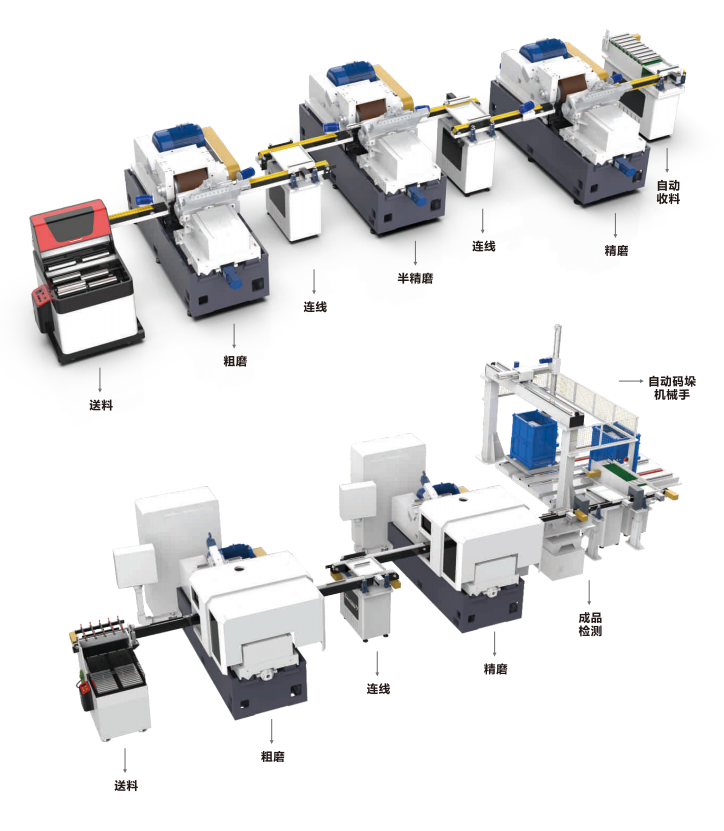 無(wú)心磨床在軸承行業(yè)中不僅是關(guān)鍵設(shè)備,而且通過(guò)搭配機(jī)械手或上下料架,其生產(chǎn)效率得到了進(jìn)一步提升。機(jī)械手或上下料架能夠自動(dòng)完成工件的上下料操作,極大地減少了人工干預(yù)和等待時(shí)間,使得加工過(guò)程更加連續(xù)和高效。結(jié)合無(wú)心磨床的高精度加工能力,這一組合不僅確保了軸承的高質(zhì)量產(chǎn)出,還顯著提高了生產(chǎn)效率,為軸承行業(yè)帶來(lái)了更高的生產(chǎn)效益和競(jìng)爭(zhēng)優(yōu)勢(shì)。